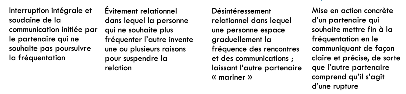Nommez chaque continuum de la responsabilité relationnelle dans un contexte de rupture à l’ère des réseaux sociaux (de gauche à droite)