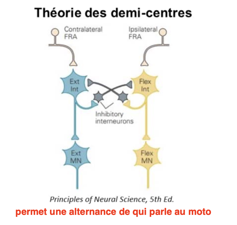 Chaque demi-centre possède une activité intrinsèque et alterne, façonné par influx afférents, rythme simple et alterné