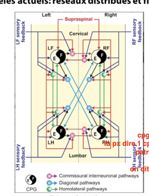 CPG sont modulaire, chacun avec unité distinctes contrôlant extension et flexion d’une articulation (lui il pensait legit chaque articulation avait un CPG)