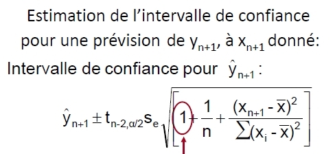 Estimation de l’intervalle de confiance pour une prévisionde yn+1 à xn+1 donné: