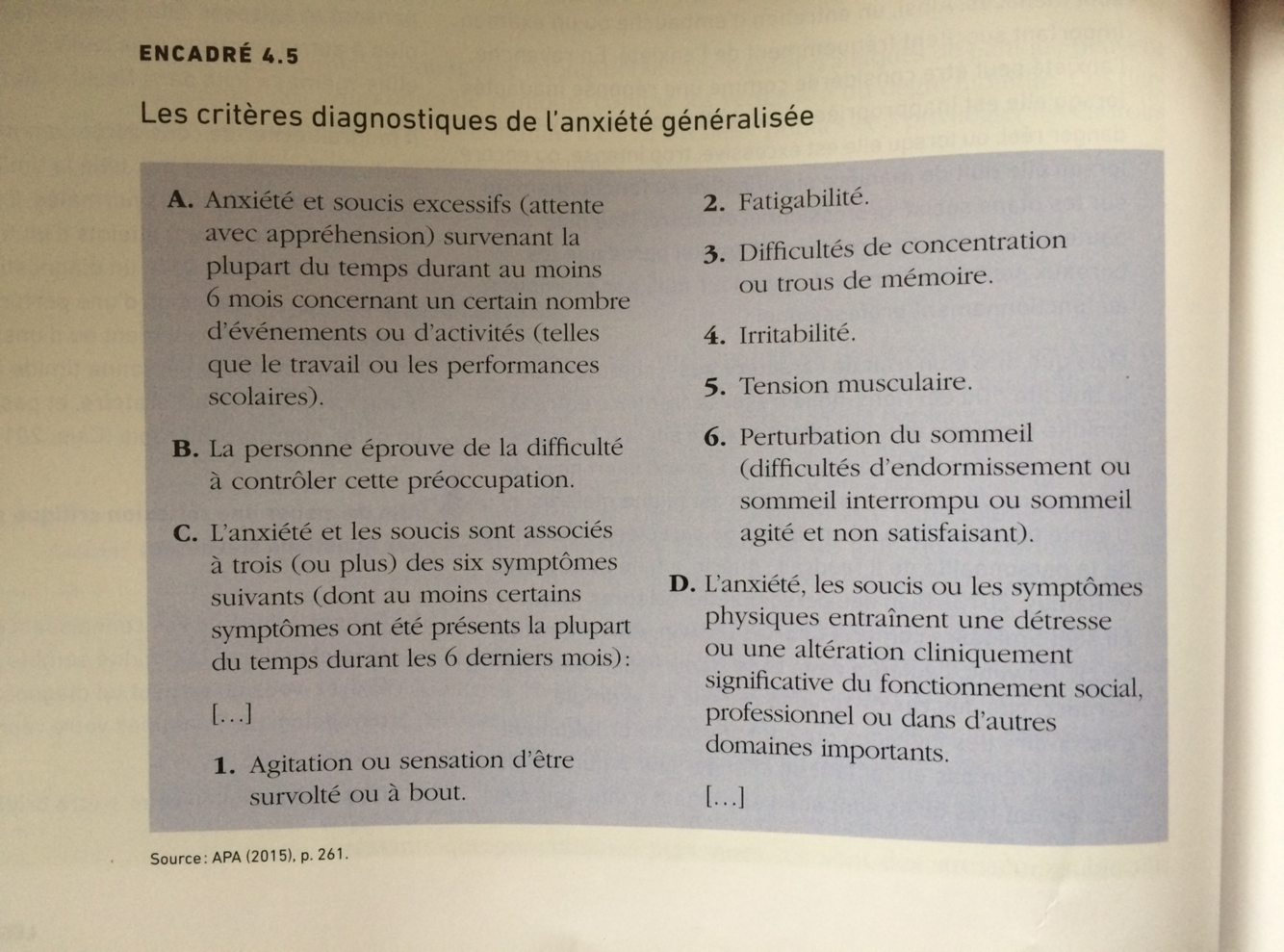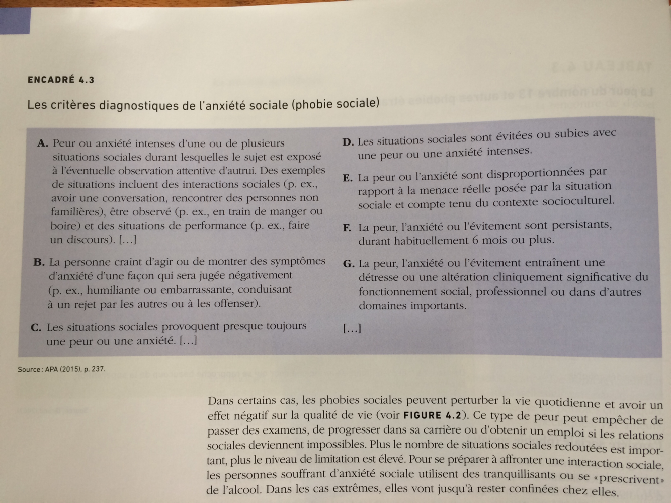 Critères diagnostique de la anxiété sociale (phobie sociale)