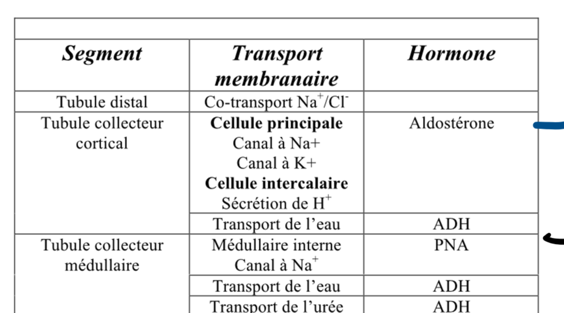 contrairement au tubule distale qui permet de réabsorber le cl- avec le na + , le tubule collecteur réabsorbe seulement le Na