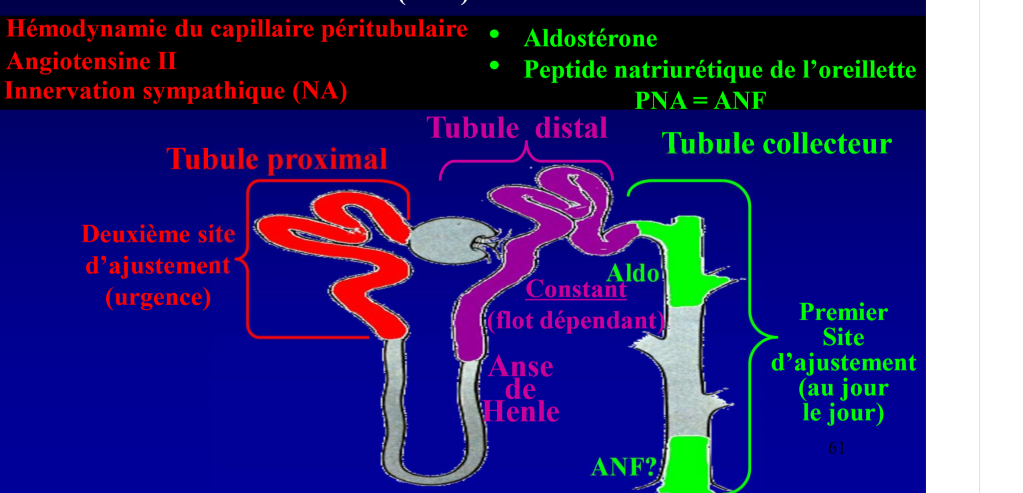 quel est le premier site d’ajustement du VCE , en fait de L’ÉxcréTION RÉNALE de SODIUM