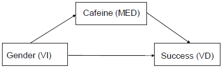 Relation totale (c): C’est la relation que je veux explorer (ex: Café et examen). On veut comprendre quelle portion de cette relation est explicable par le médiateur.