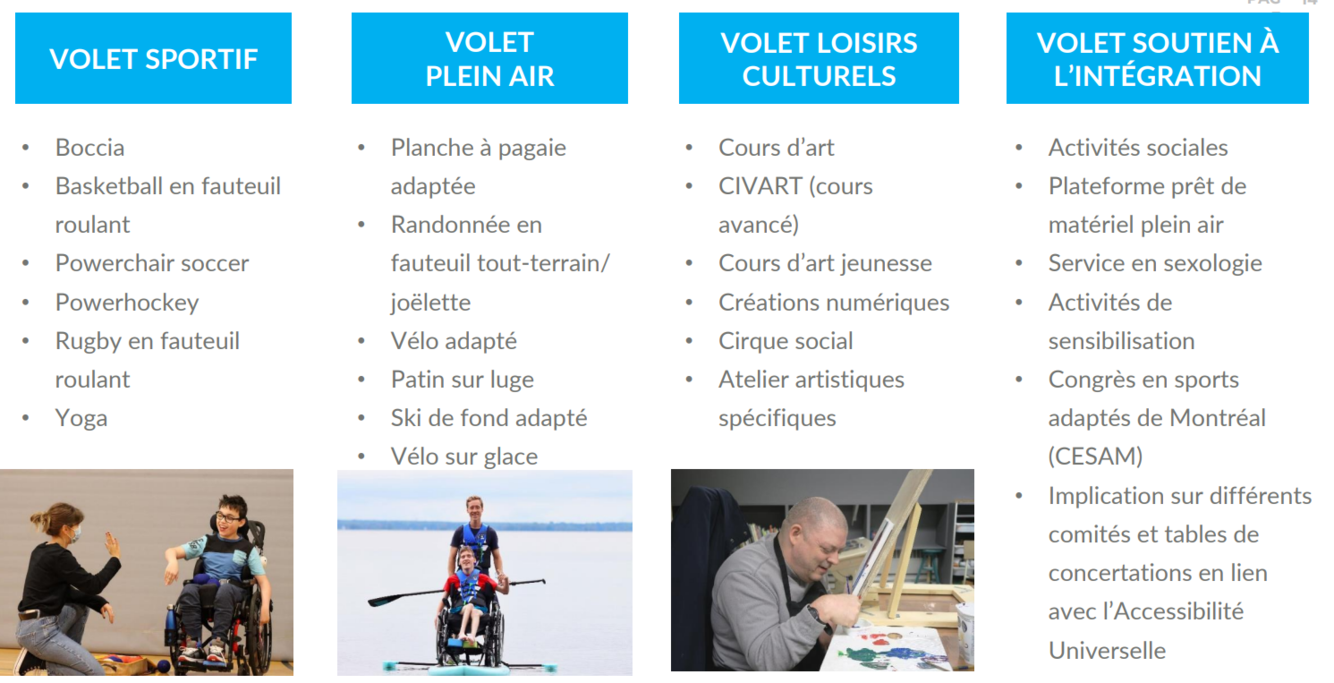 la population à mobilité réduite et/ou ayant des limitations physiques d’avoir un accès adéquat à l’activité physique et à la pratique d’une activité sportive.