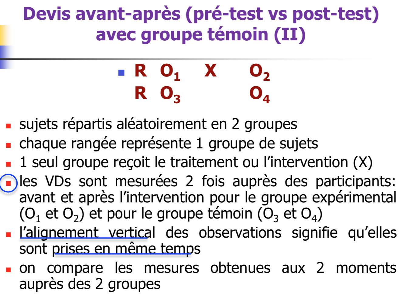 3. O désignent les observations ou les prises d’une mesure avant ou après le traitement ou l’intervention