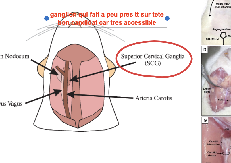 ganglion cervical supérieur, pk bon candidat pour pénétration dans un tissu cible au sein du SNA