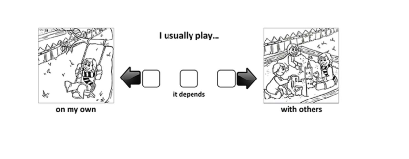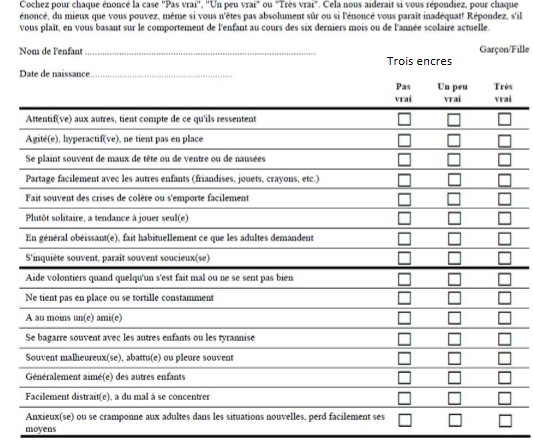 Les pictogrammes servent comme échelle de réponse. Très utile avec les enfants.