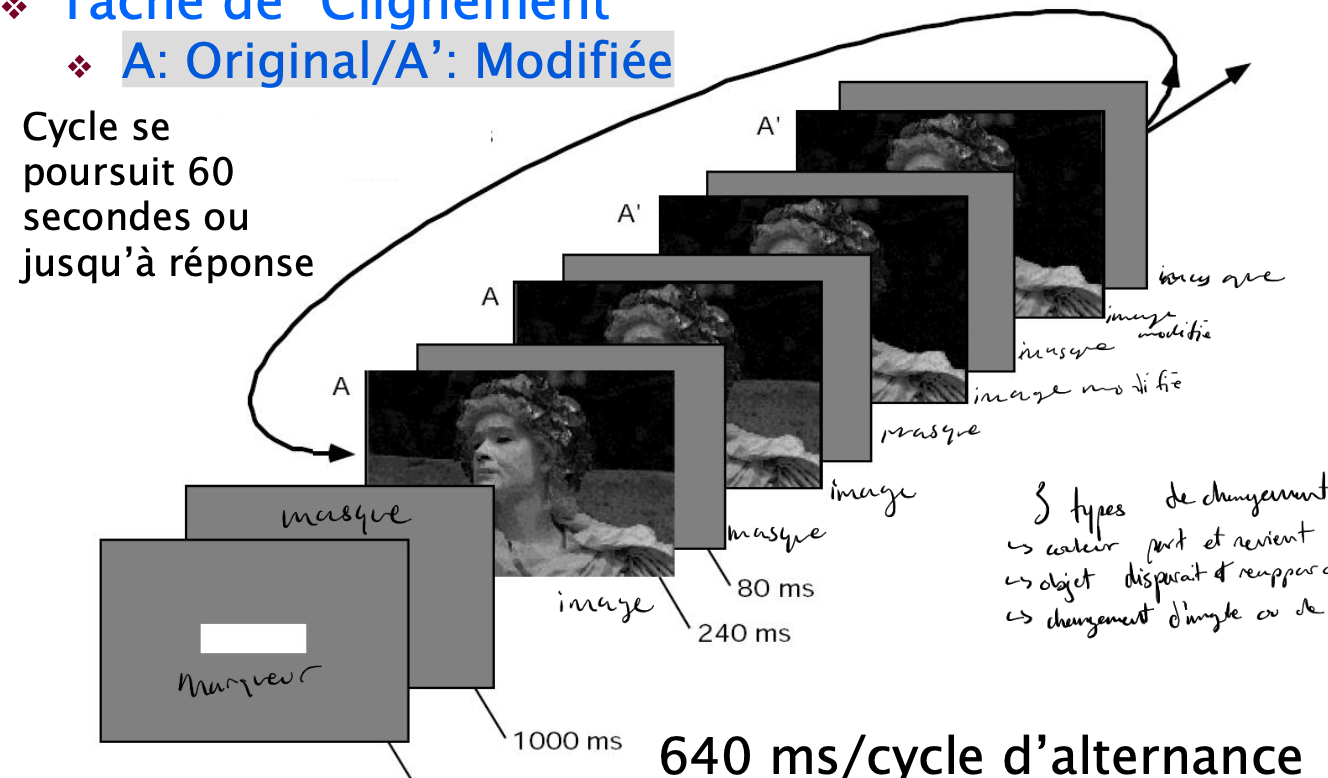 mm si changement se produit à l’intérieur de notre champ visuel, on peut ne pas le voir si notre champ attentionnel est dirigé au mauvais endroit