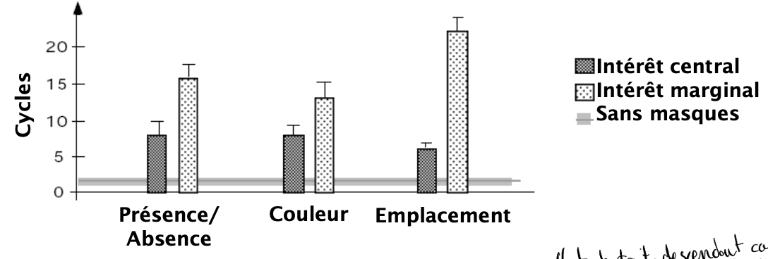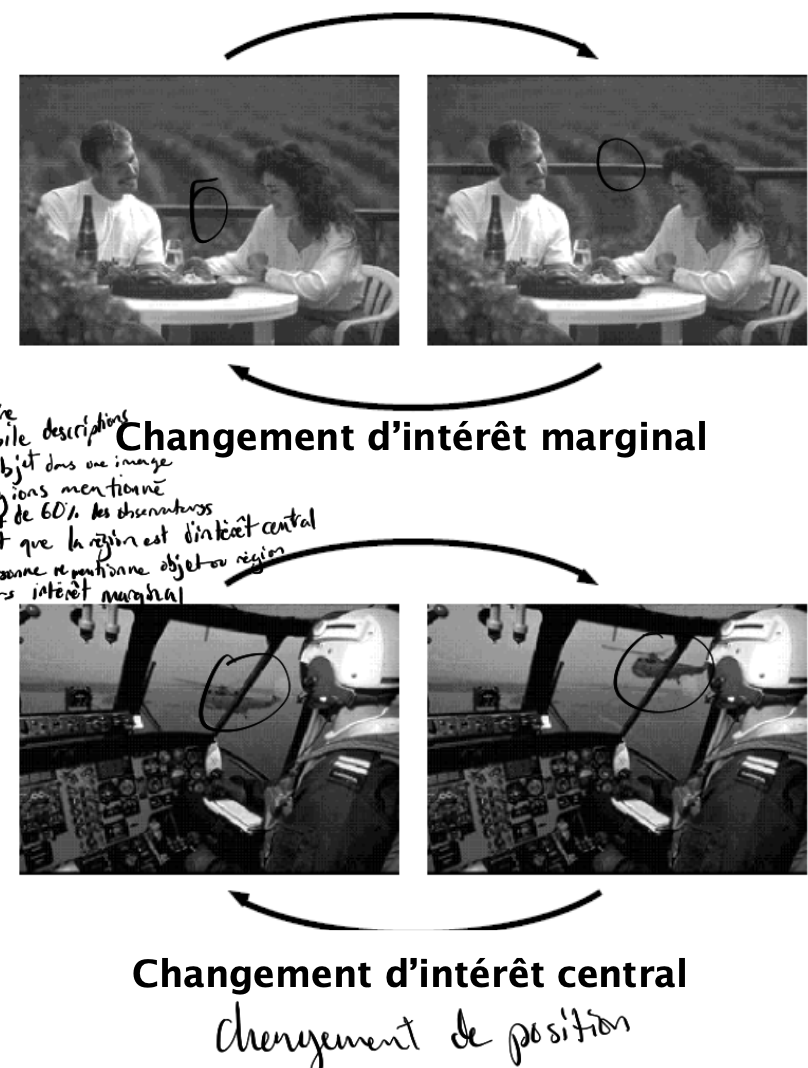 cause : pcq on ne porte pas attention à l’emplacement du changement, mais on regarde généralement l’image DONC regarder vers ≠ Voir (traiter info)