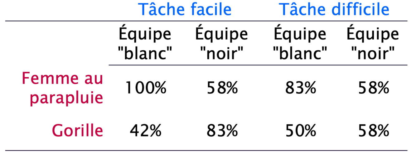 “Lorsque les observateurs sont concentrés sur un autre objet/événement, ils ne remarquent pas toujours des objets saillants et distinctifs”