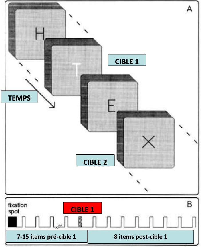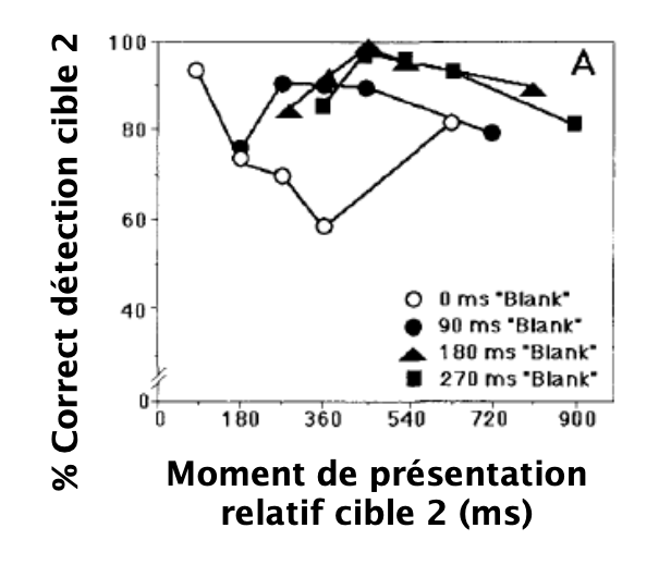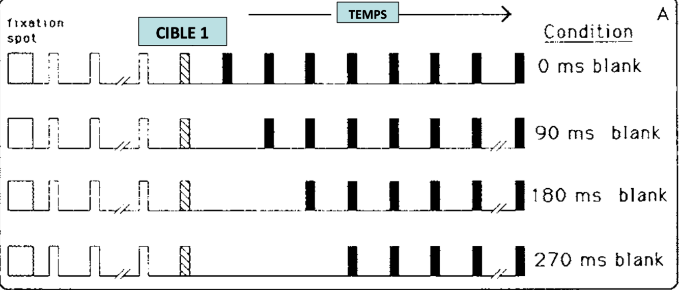 pcq pendant que je cible 1 (lettre blanche) mon syst. attentionnel est occupé et semble qu’on est pas capable de traiter autre chose tout de suite