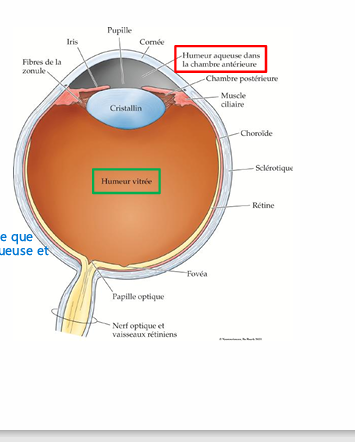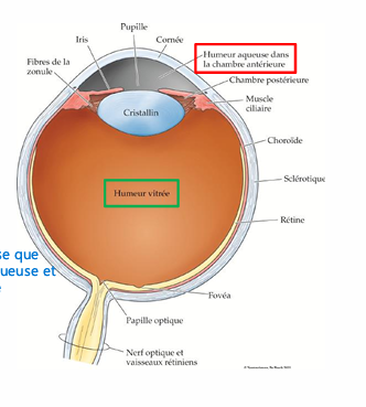 nourrit la cornée et le cristallin, et est produite par les procès ciliaires de la chambre postérieure