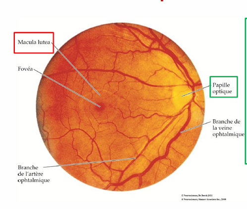 Quelles sont les caractéristiques de la macula lutea ( tache jaune ) de la rétine