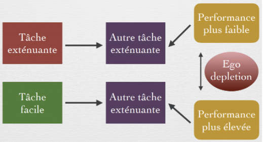 Lorsqu’on fait deux tâches exténuantes une à la suite de l’autre, on va avoir de moins bonnes performances lors de la deuxième, car on a plus assez d’énergie pour bien faire la deuxième