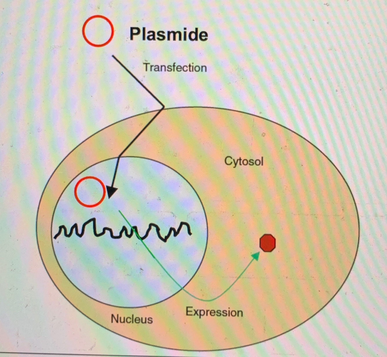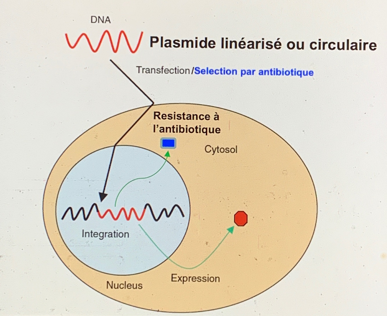 —> plasmide atteint le noyau et permet l’expression de protéines