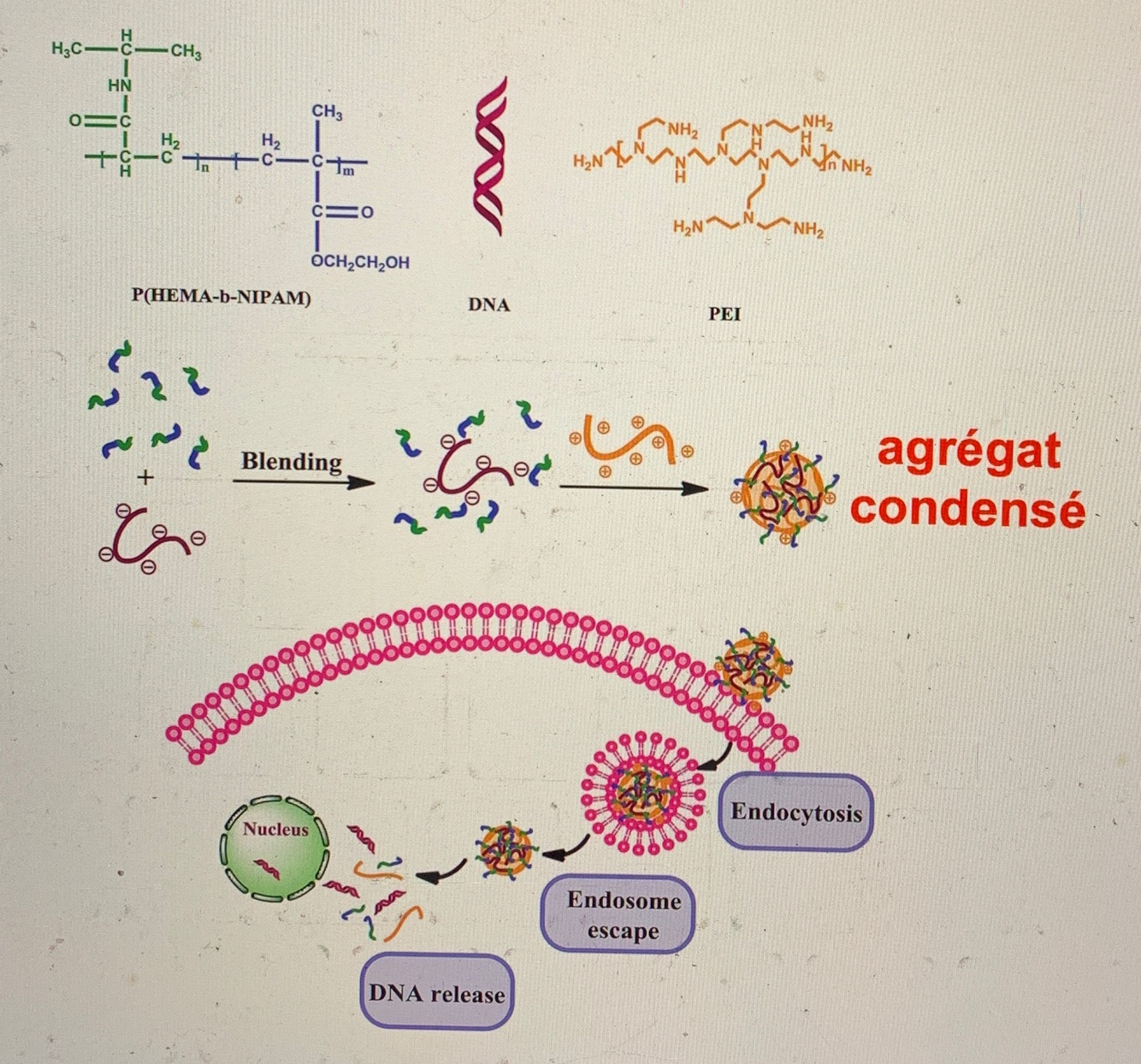 1) formation d’agrégat soluble d’ADN avec charge +