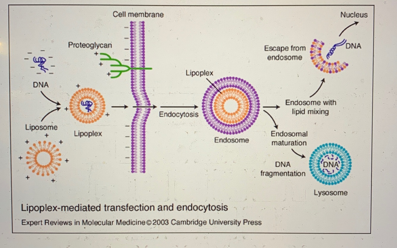 Lipide (+) encapsule l’ADN —> interagit avec mem. Cellulaire (-)