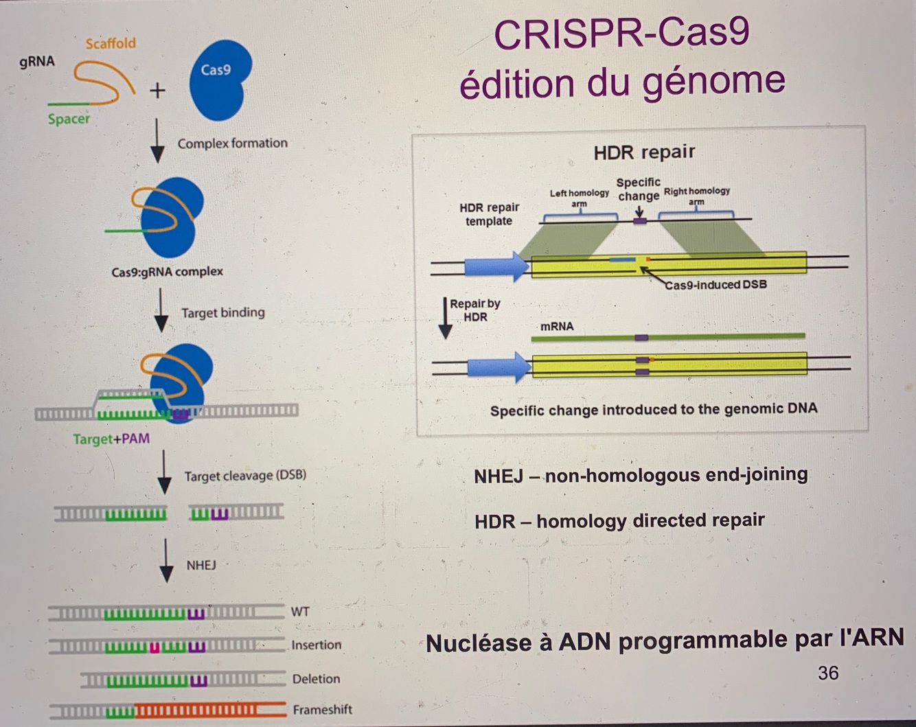 —> fournit une matrice pour réparer la coupure : une séquence spécifique peut être introduite dans la séquence