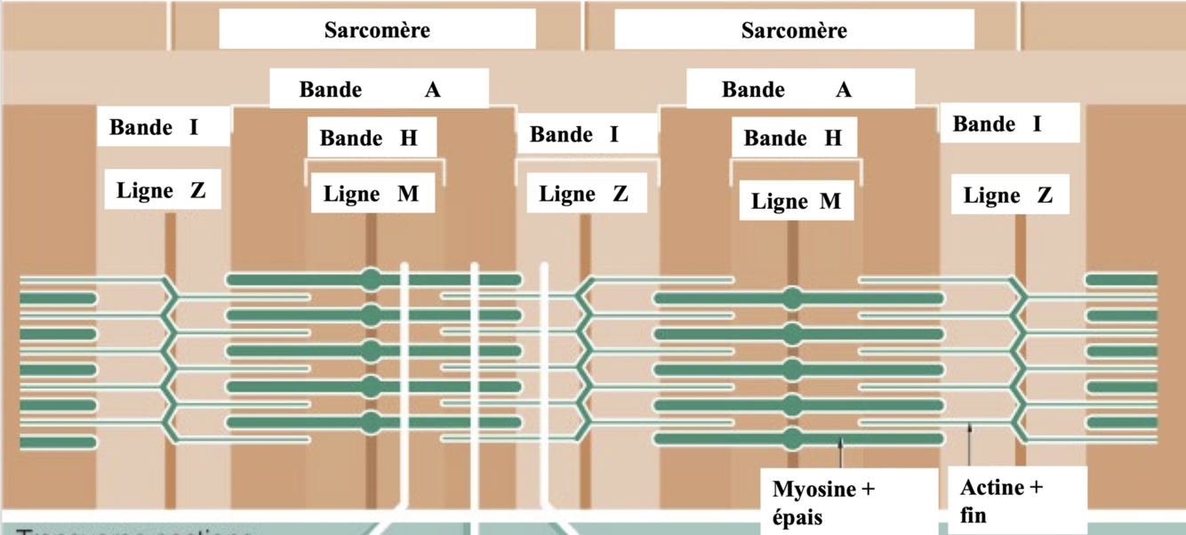 Sarcomère = unité des myofibrille responsable de la contraction des fibres musculaires