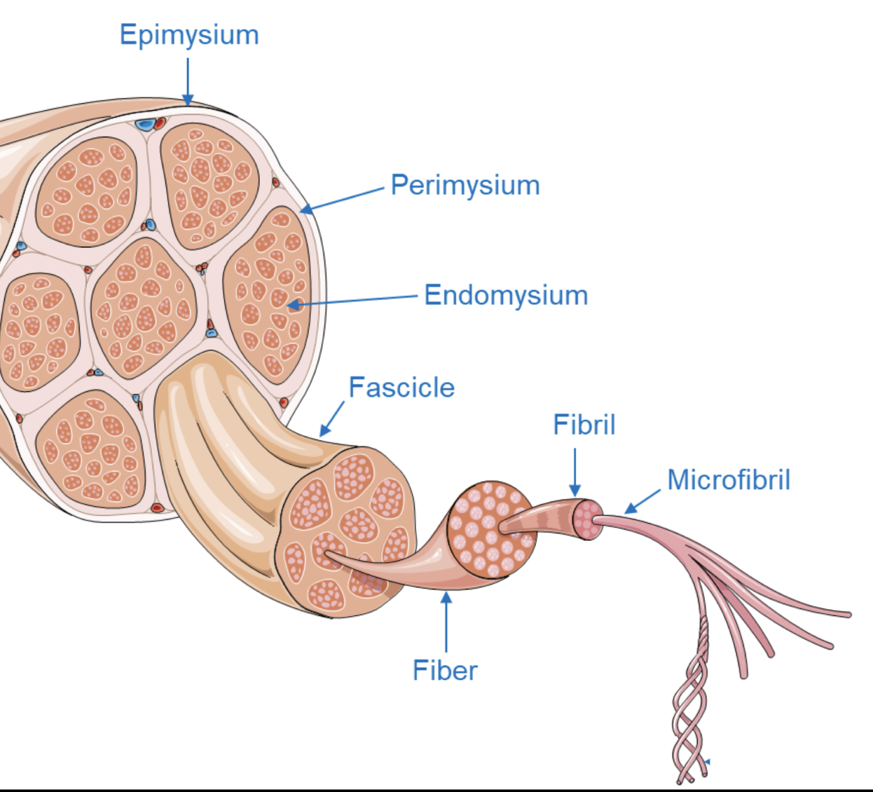 5 - Fibres < faisceaux < endomysium < péri < épi