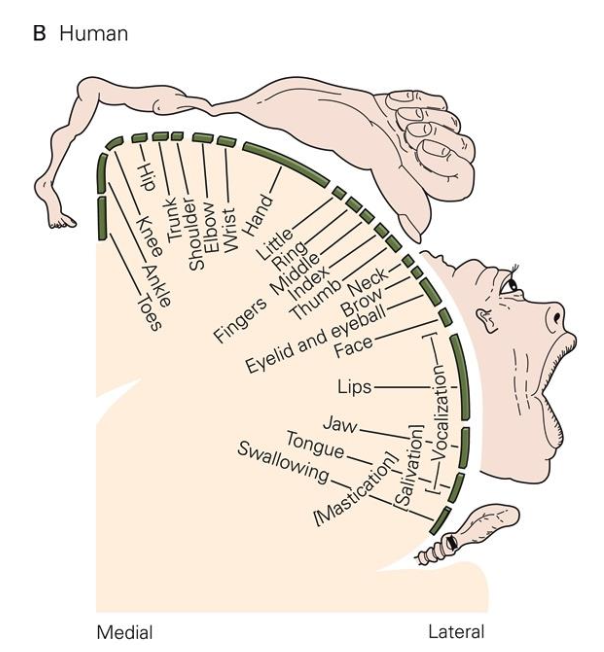 la représentation de parties spécifiques du corps est disproportionnée dans carte motrice (VF)