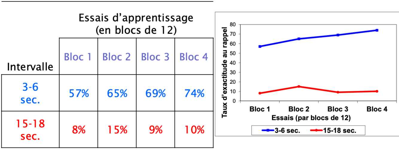 quels sont les resultats (rappel correct selon l’intervalle)