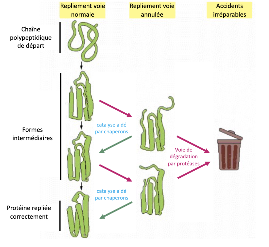 Quelles sont les 3 voies que peut remprunter une protéine au cours de son repliement?