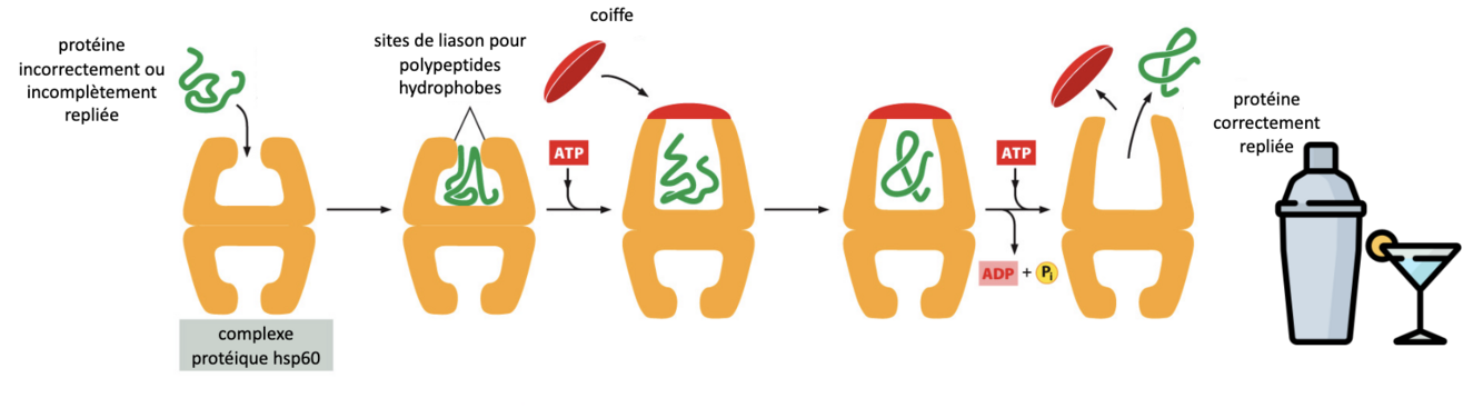 → permettent de faire en sorte que les protéines se replient correctement/retournent sur la voie de repliement normal en aidant la catalyse
