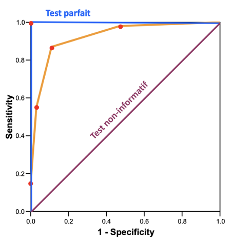 —> Caractérise la capacité d’un test diagnostique « continu » à discriminer entre des sujets ayant et n’ayant pas la maladie