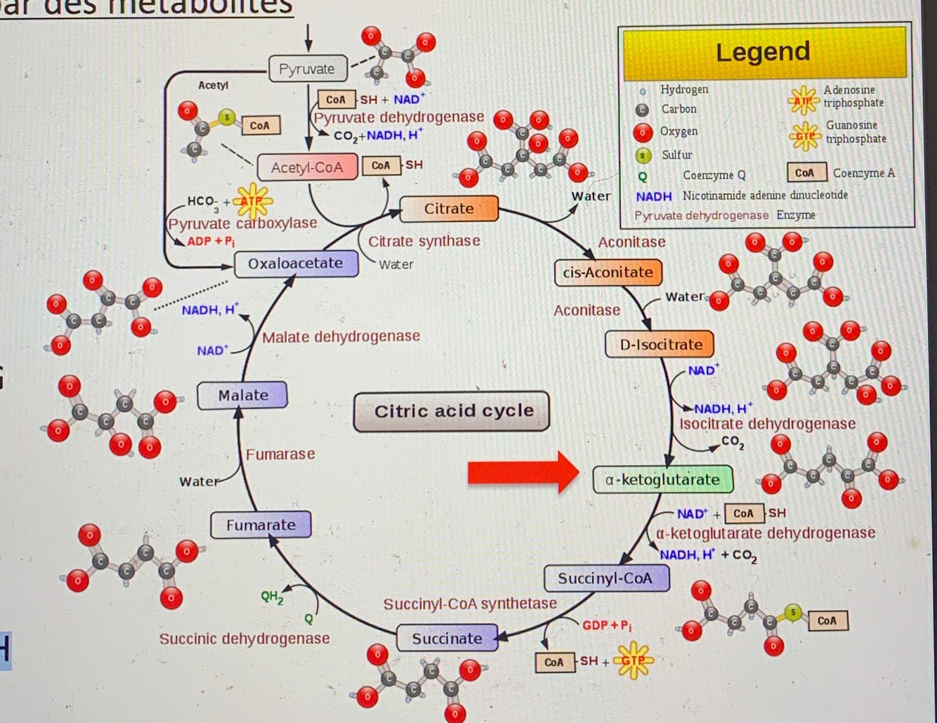 —> l’enzyme IDH (isocitrate déhydrogénase) produit α-KG à partir d’isocitrate