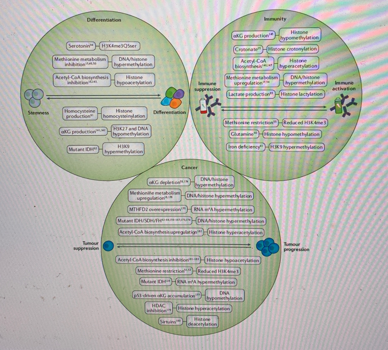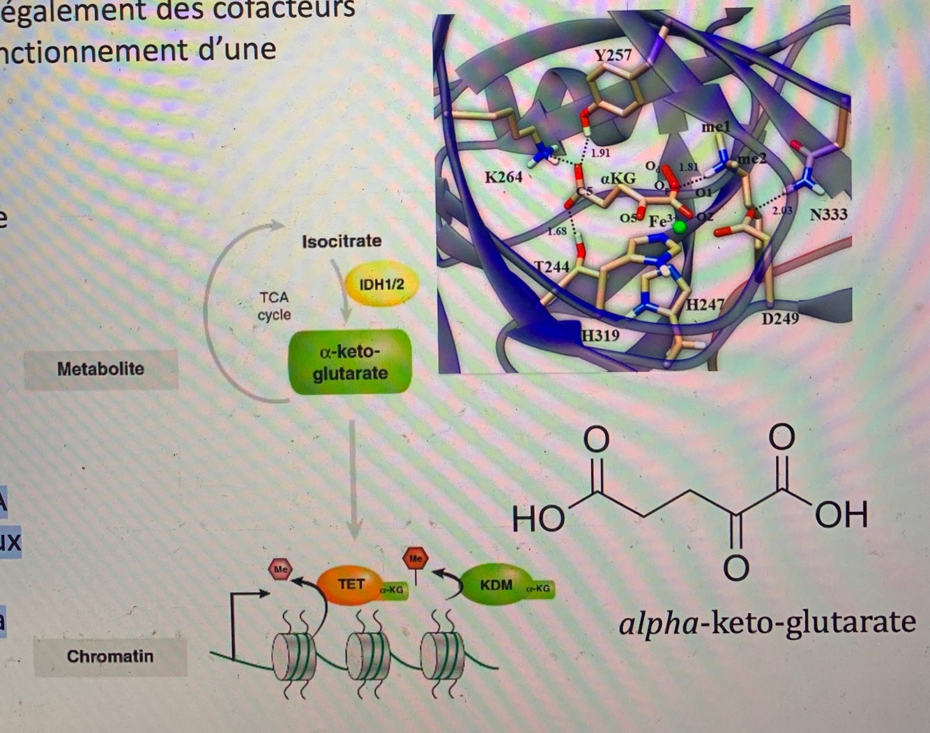 —> taux de α-KG – issu du TCA - régule alors l’activité de deux déméthylases (« erasers ») distincts, couplant le TCA à la modification de la chromatine.