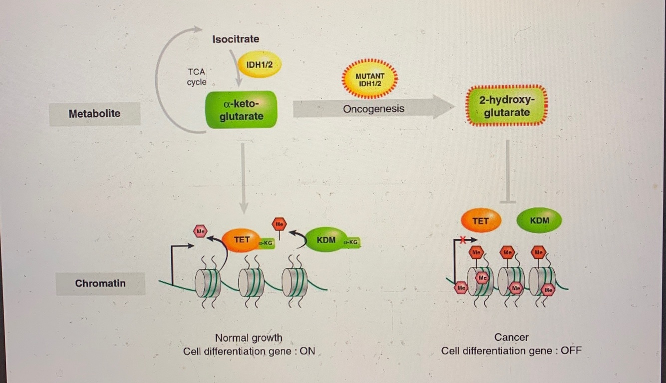 —> D-2-hydroxyglutarate bloque les « erasers » de type KDM et TET!