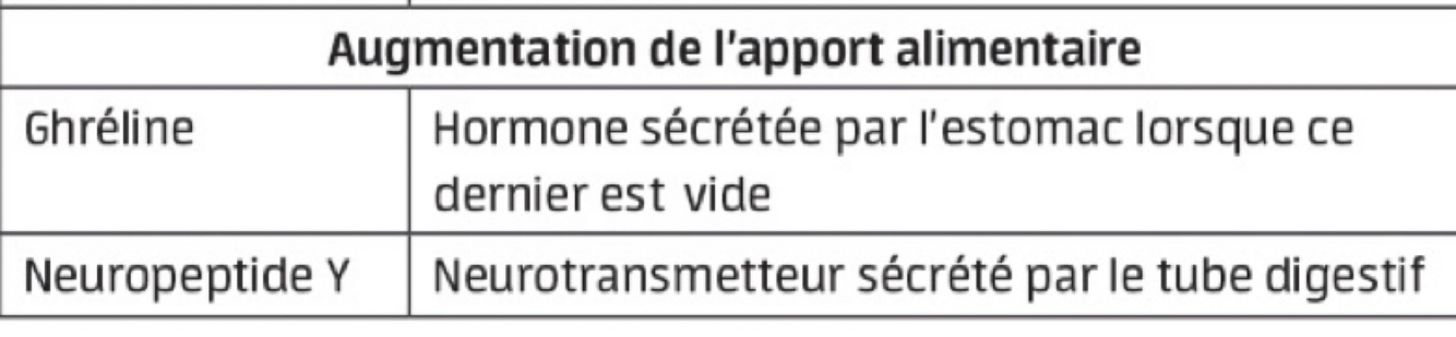 Les hormones (2) et leurs sites de sécrétion qui augmentent l’apport alimentaire