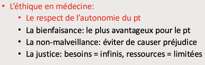 Nous savons que l’éthique est un domaine très complexe. En médecine, on a choisi de distinguer 4 valeurs importantes. Lesquelles?
