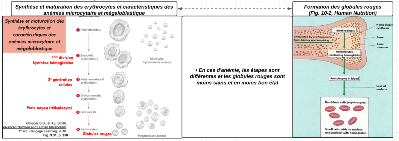 Expliquez le rôle du fer : de la Synthèse et maturation des érythrocytes et caractéristiques des anémies microcytaire et mégaloblastique.