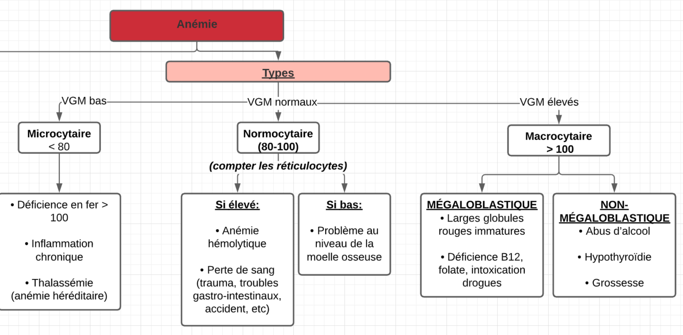 Comment différencie t’on les différents types d’anémie?