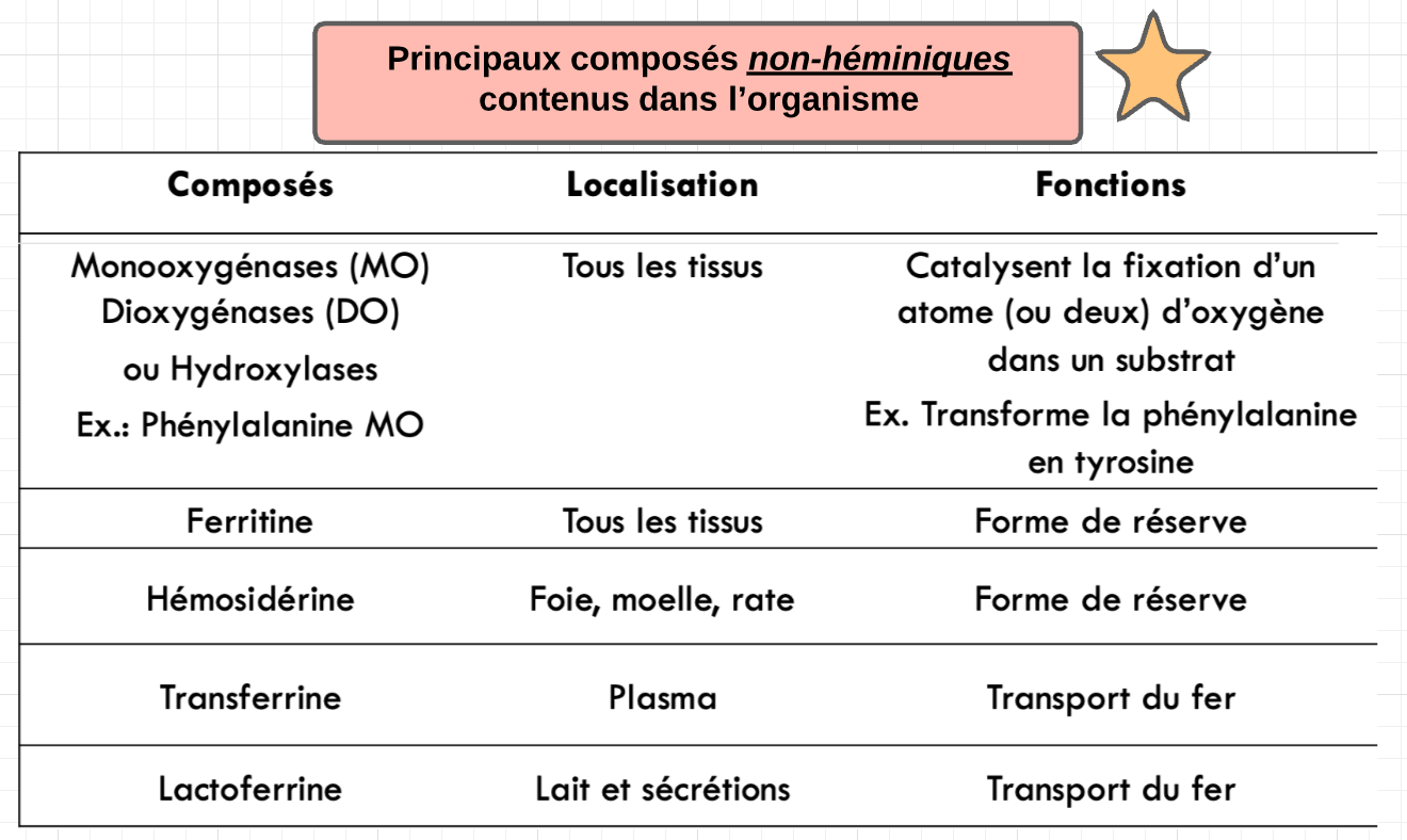 *Quels sont les Principaux composés non-héminiques contenus dans l’organisme?