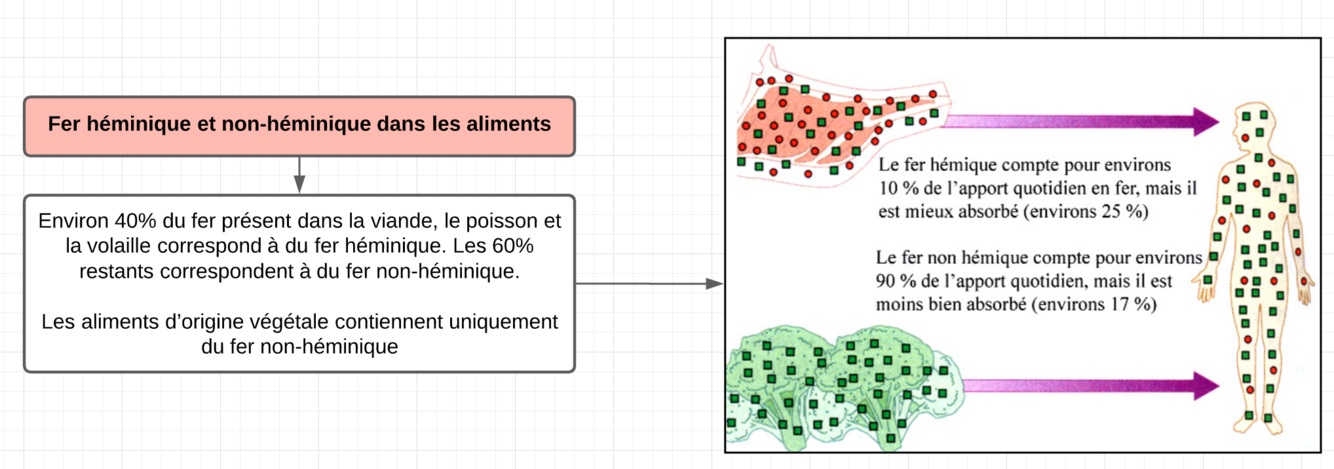 Comment est organisé le Fer héminique et non-héminique dans les aliments?