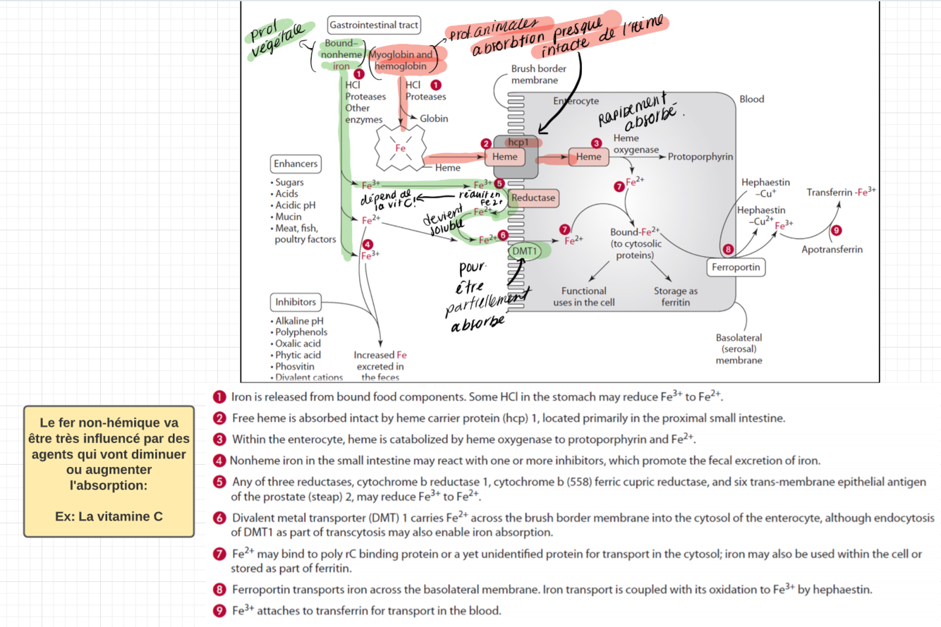 Comment se produit la Digestion, absorption et transport du fer?