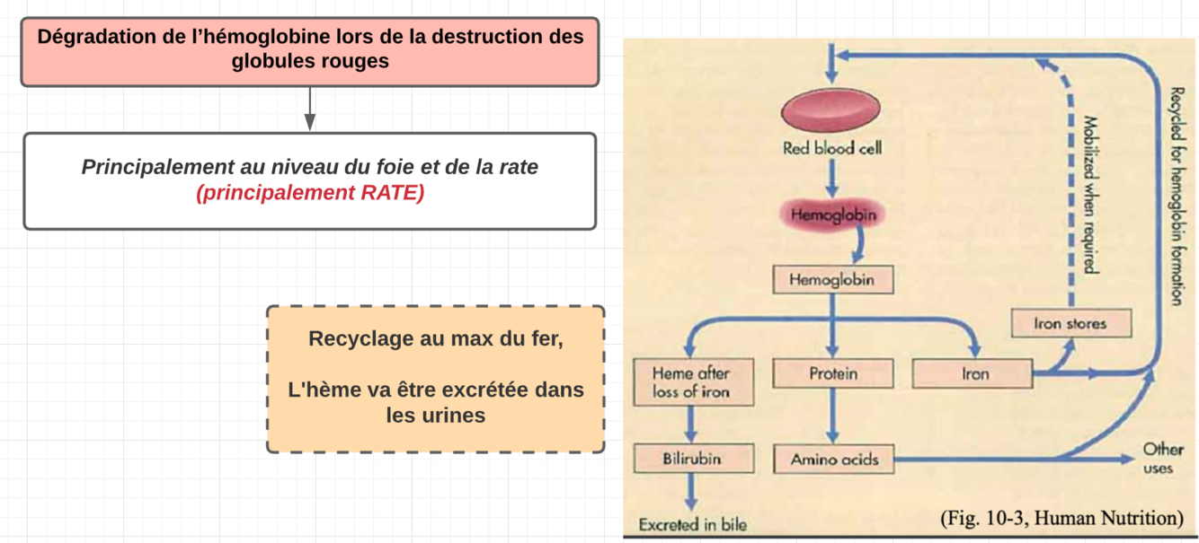 Qu’est ce que la Dégradation de l’hémoglobine lors de la destruction des globules rouges?