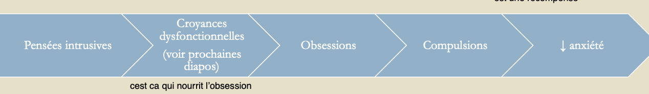 2. Obsessions engendrent les comportements compulsifs (obsession = création d’anxiété)