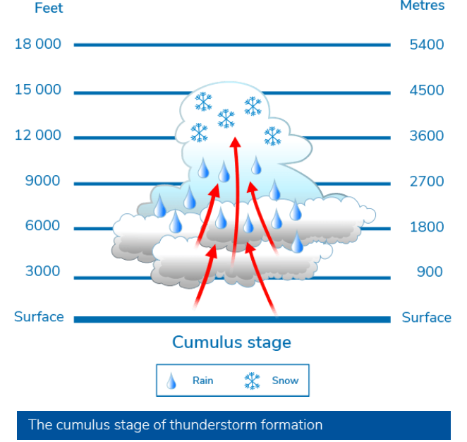 Thunderstorm formation: Cumulus stage