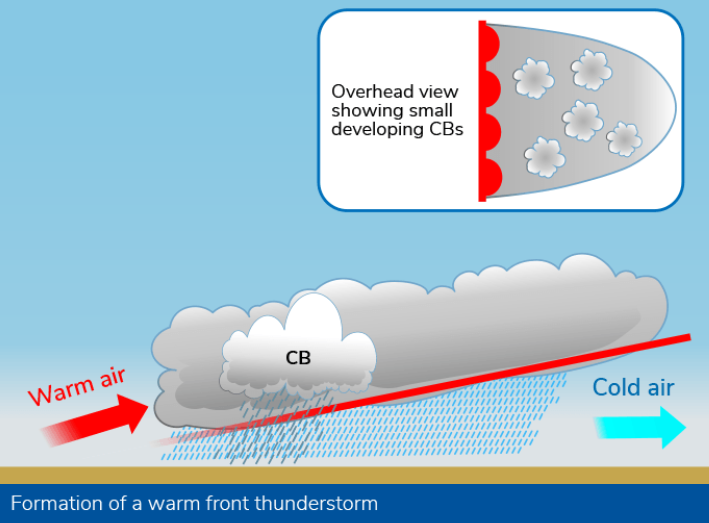 Frontal thunderstorms are most often associated with cold fronts, however they can also occur with warm fronts