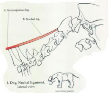 Label the nuchal ligament and the supraspinous ligament
