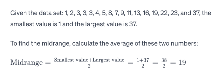 Midrange: Sum of Smallest and LARGEST divided by 2