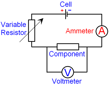 Changing the resistance of the variable resistor will alter the values of current and p.d. which can be recorded in a table.