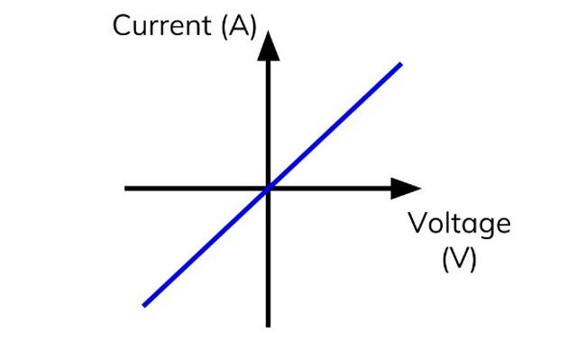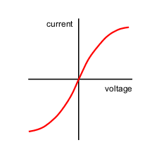 Initially current is proportional to p.d. the current continues to increase with p.d. but at a decreasing rate.