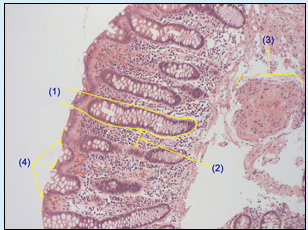 Name the following parts of colon histology