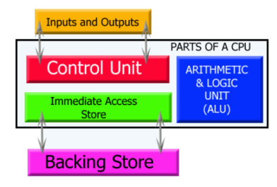 The Immediate Access Store holds the data needed instantly by the CPU, as the ‘Backing store’ (basically the hard drive or SSD) is too slow.